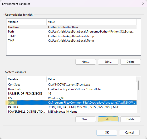 [Path]を選択し、[編集]へ進む。