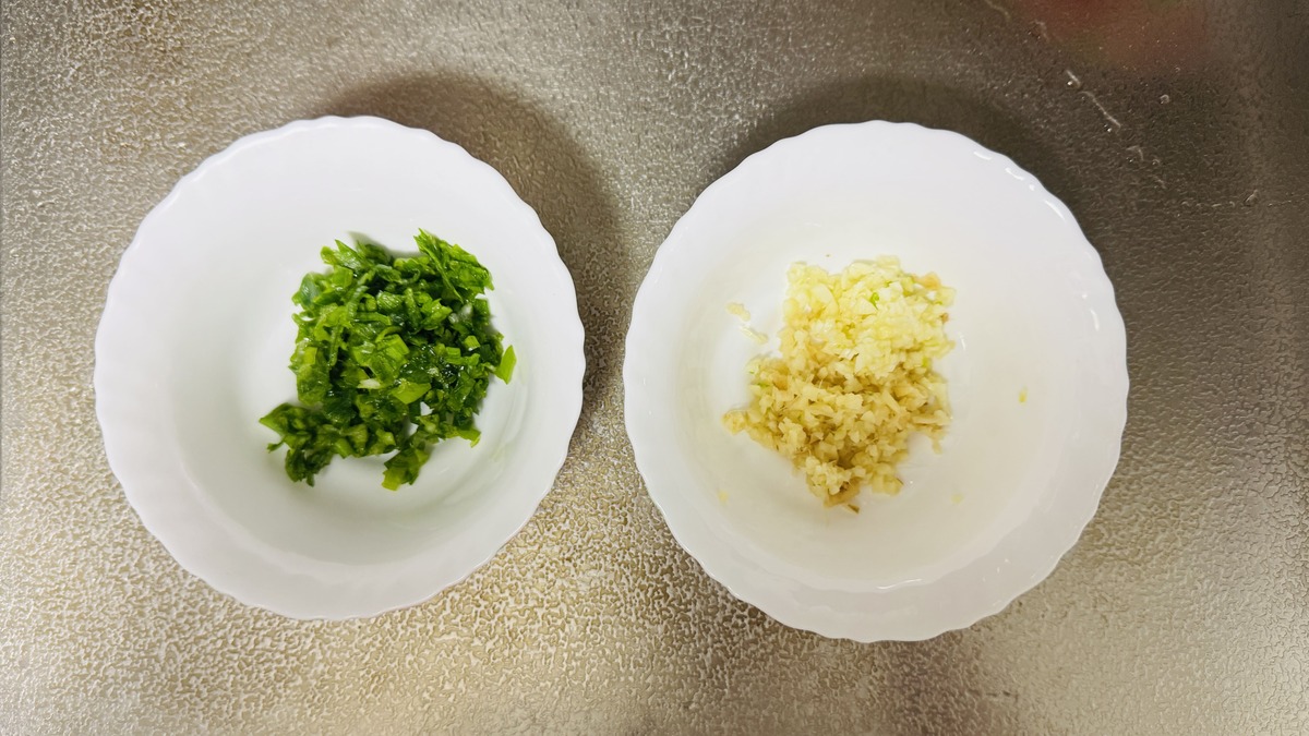 生姜とニンニクはみじん切り、青葱は刻み葱にする。