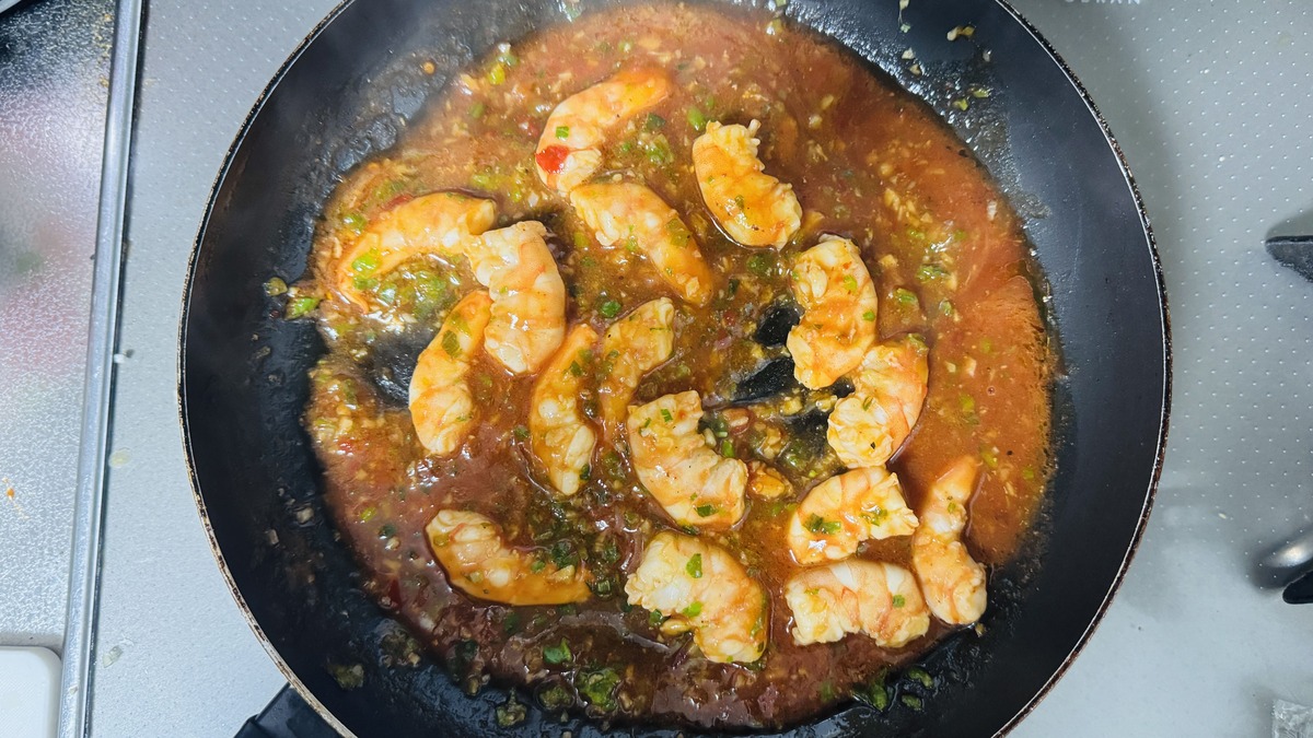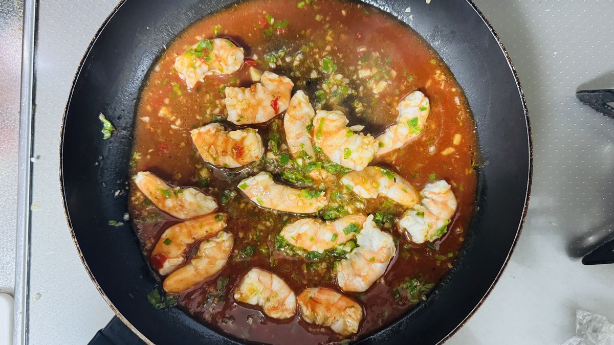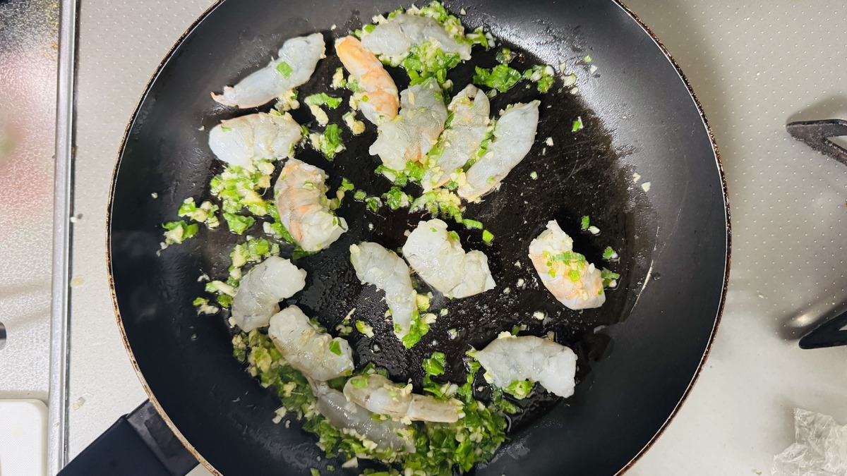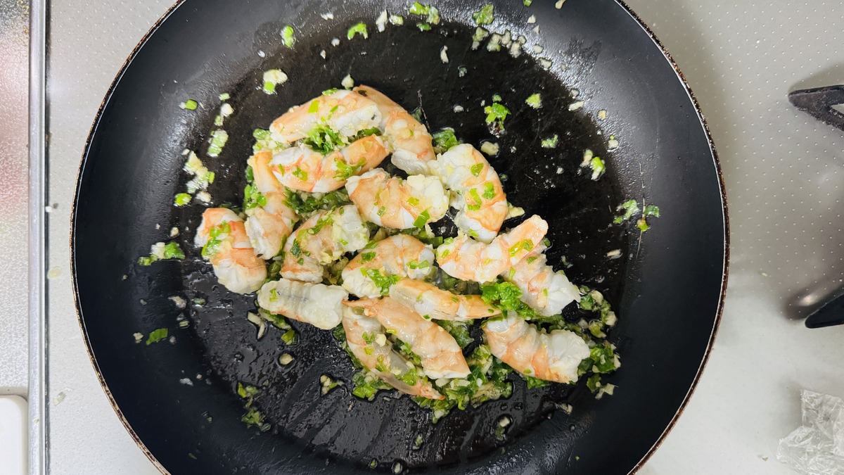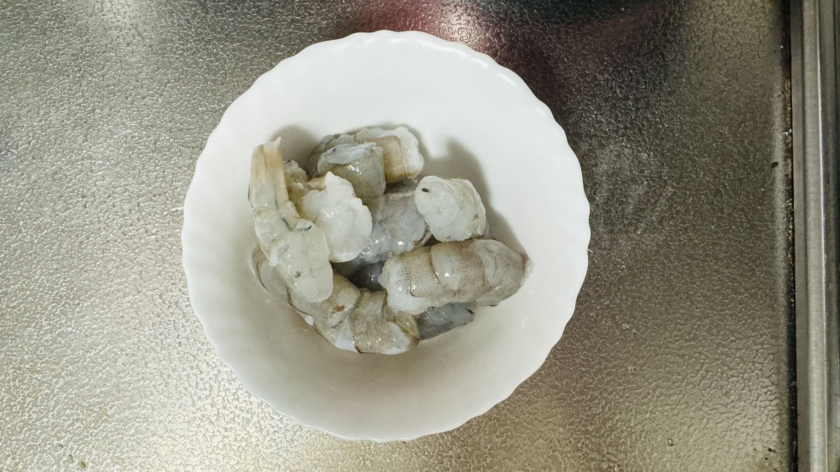 海老は皮を剥いておく。個人的に尻尾は好きなので残しておく。